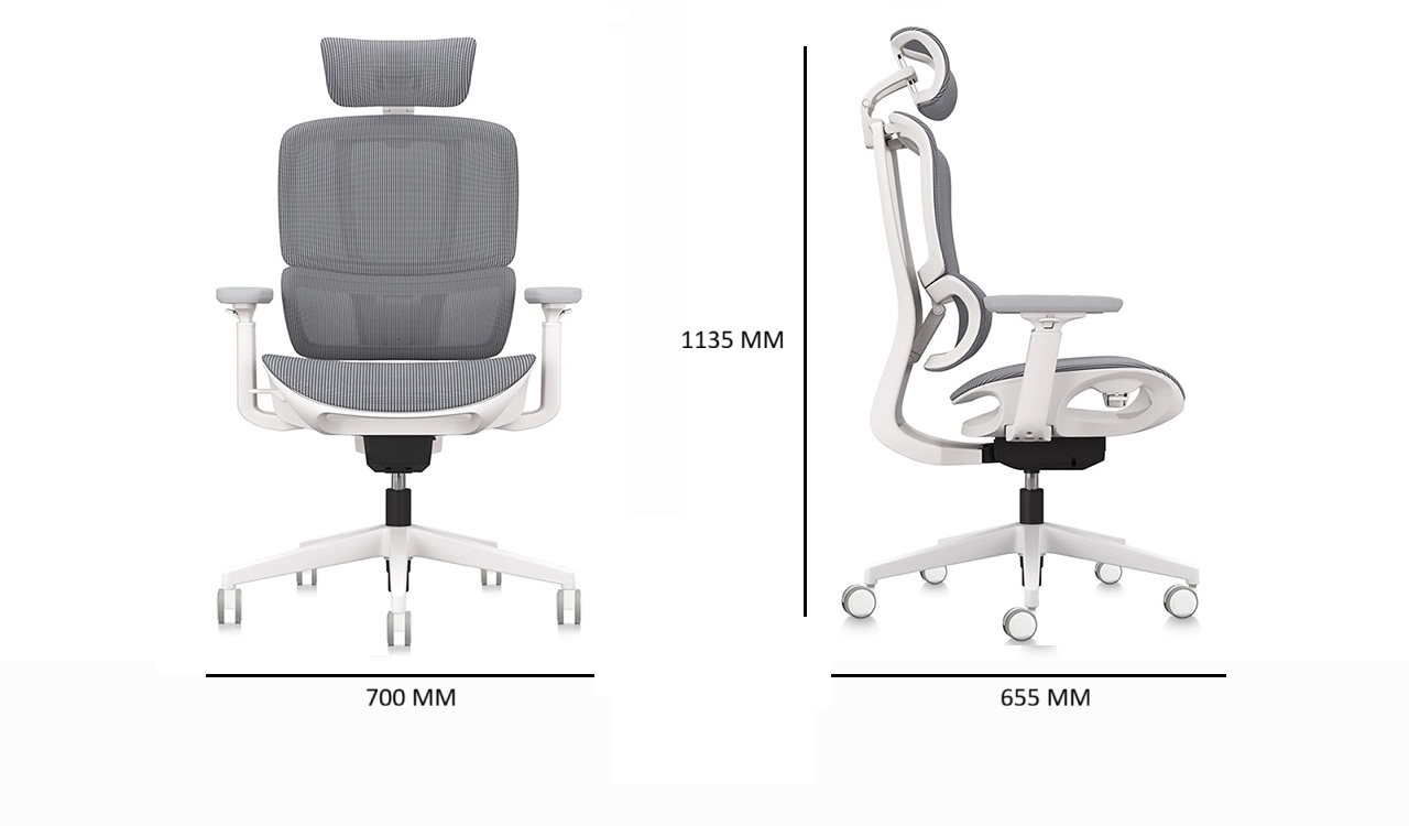 The H2 Series office chair combines modern elegance with ergonomic precision. A warm white frame is contrasted with breathable gray mesh back and seat, while the independent telescopic lumbar ensures tailored comfort. PU-surfaced 4D armrests, 3D adjustable headrest, a breathable mesh seat, and a synchro-tilt wire control mechanism with one-click three-control enhance flexibility. Supported by reinforced white nylon five-star base and PU casters, it is a perfect choice for high-performance workspaces.