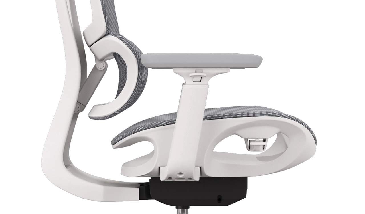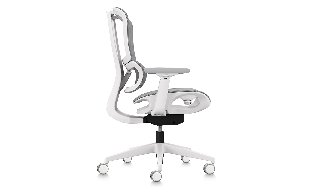 The H2 Series office chair combines modern elegance with ergonomic precision. A warm white frame is contrasted with a breathable gray-mesh back and seat, while the independent telescopic lumbar ensures tailored comfort. PU-surfaced 4D armrests, a breathable mesh seat, and a synchro-tilt wire control mechanism with one-click three-control enhance flexibility. Supported by reinforced black nylon five-star base and PU casters, it is a perfect choice for high-performance workspaces.