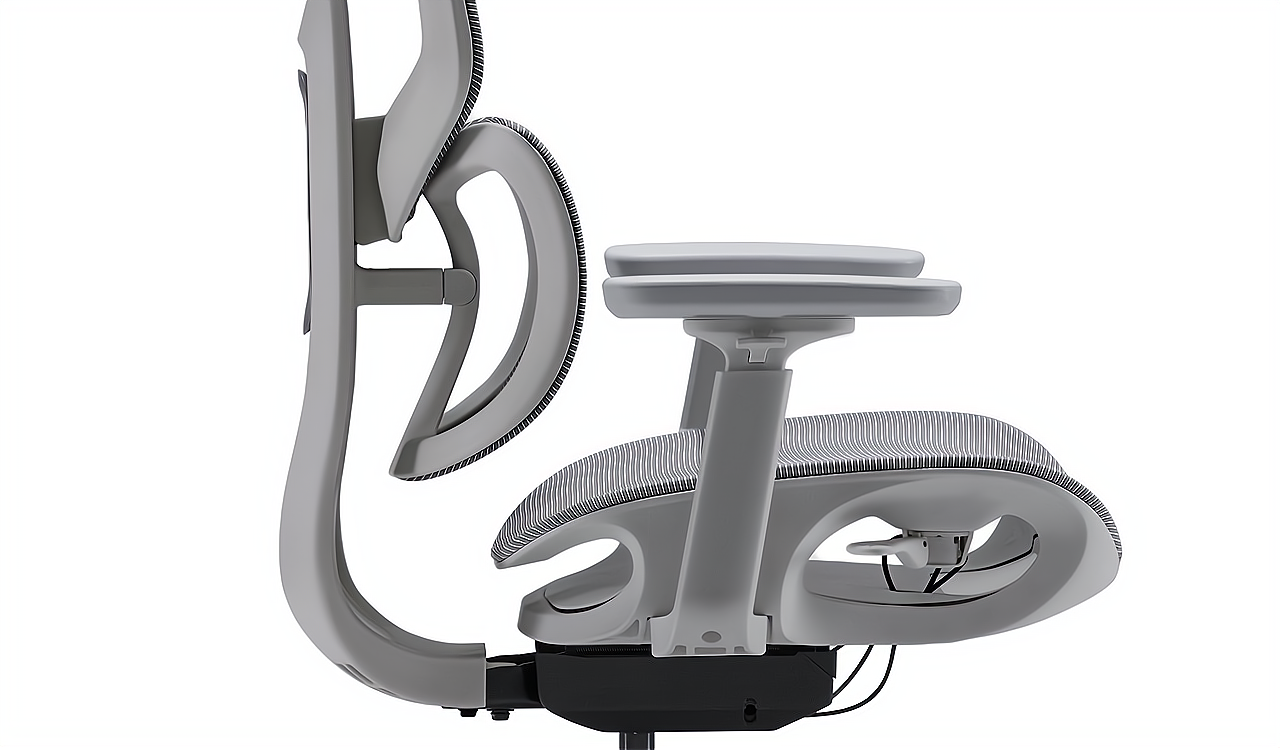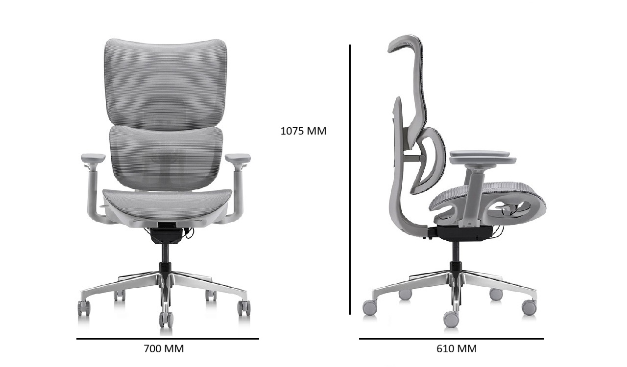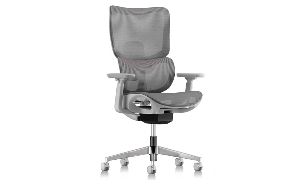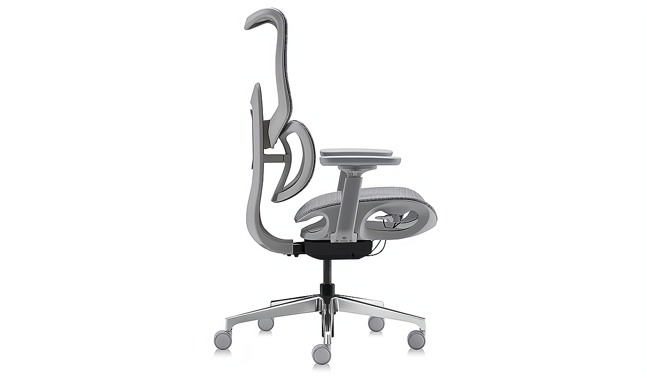 The Hylo series office chair combines modern elegance with ergonomic precision. A metal gray frame contrasts the breathable light gray mesh back and seat, while the independent height-adjustable backrest with telescopic lumbar support ensures tailored comfort. PU-surfaced 4D armrests, a mesh seat, and a synchro-tilt wire control mechanism with one-click three-control enhance flexibility. Supported by a 350# polished aluminum alloy five-star base and PU casters, it is a perfect choice for high-performance workspaces.