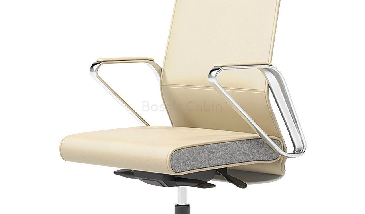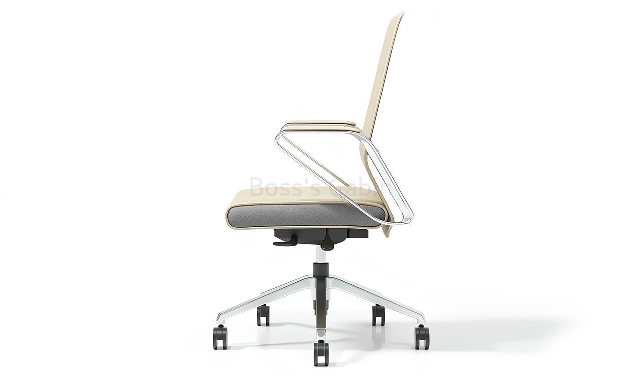 • ‘Hero’ Slim Mid Back Office Chair In Beige Leather Upholstery