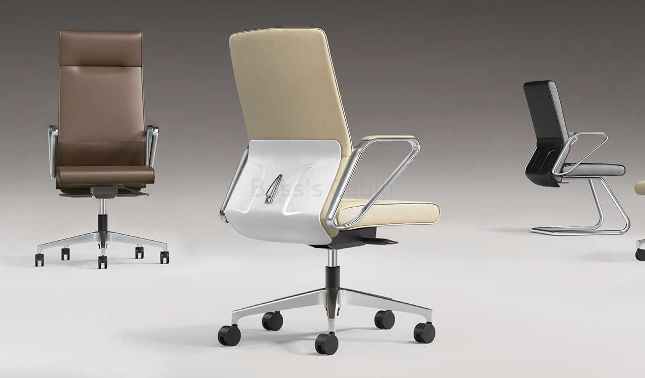 A sleek, modern medium back chair upholstered in fine genuine leather with state-of-the-art ergonomics. Its slim profile is enhanced by a piano-black fiberglass back panel for optimum lumbar support and posture. The VVF polished aluminum alloy armrests add elegance, while the synchronized tilt mechanism with multi-position locking and smooth height adjustment provide flexibility. Supported by a polished aluminum base and durable nylon castors, this Hero Series chair blends luxury, performance, and durability for the contemporary workspace.