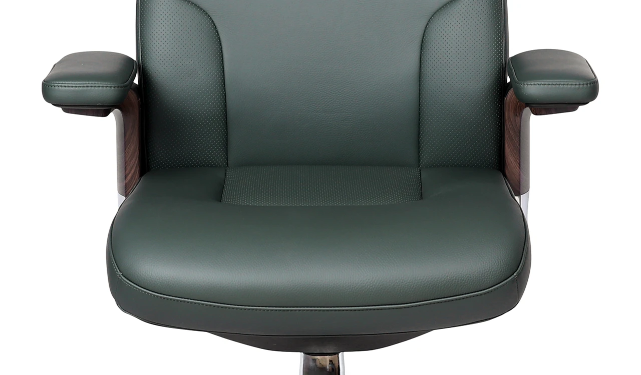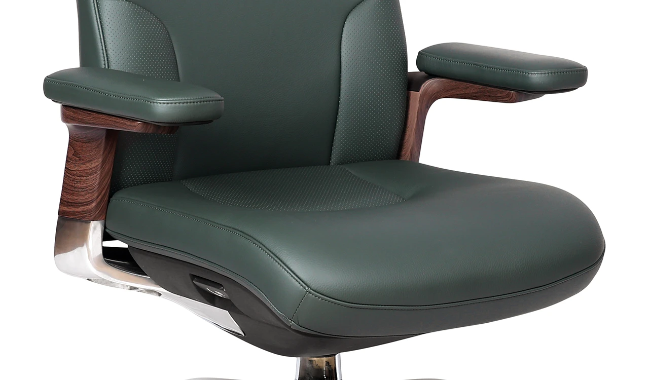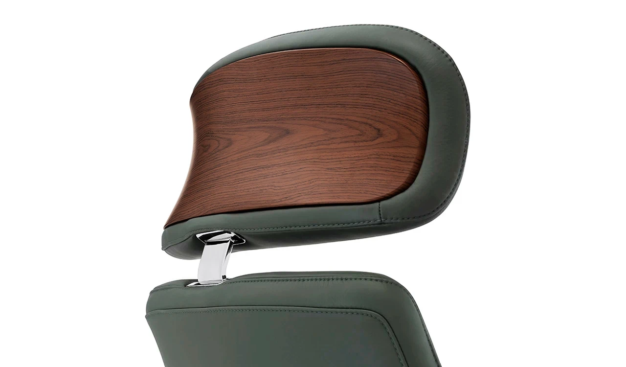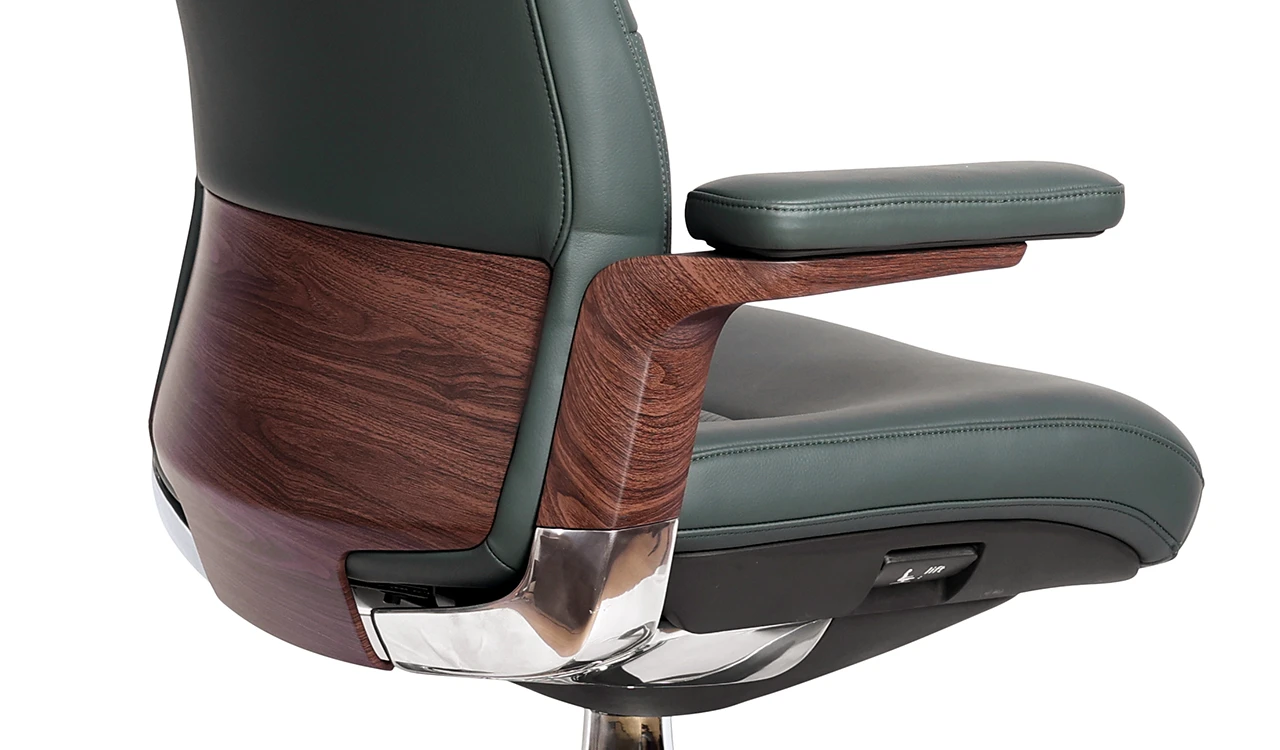 A regal chair upholstered in rich Italian leather, designed to provide both luxury and comfort. The sculpted backrest with walnut finish lower back & headrest accent is paired with high-density molded foam and a durable plastic frame for lasting durability. Featuring height adjustable headrest and armrests, it adapts seamlessly to individual needs. The synchronized mechanism with seat sliding ensures ergonomic balance, while the polished aluminum base with PU casters offers stability and effortless movement. Part of our Regent Series of chairs its a statement piece of refined craftsmanship.
