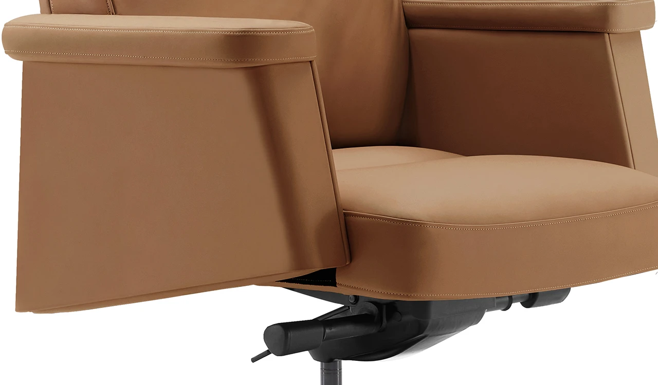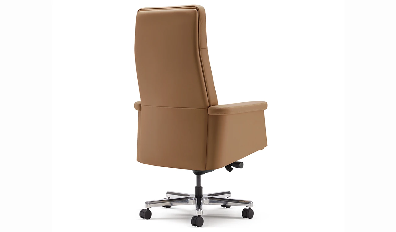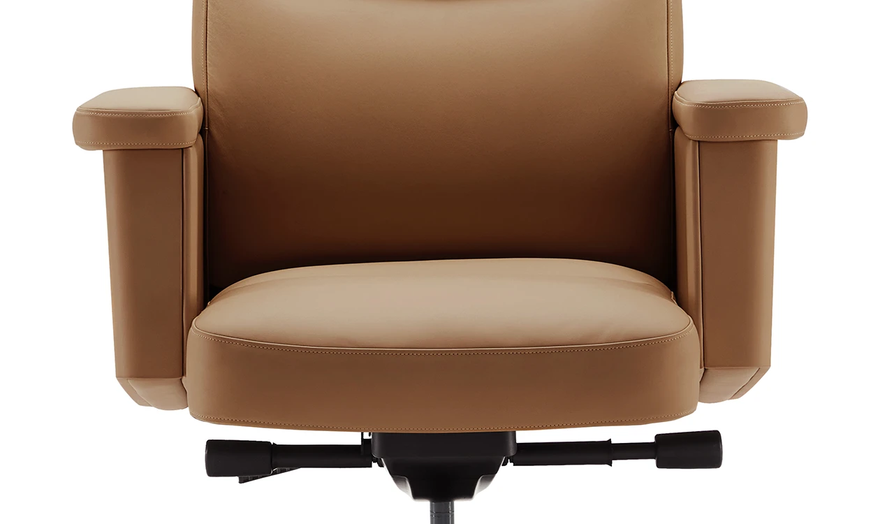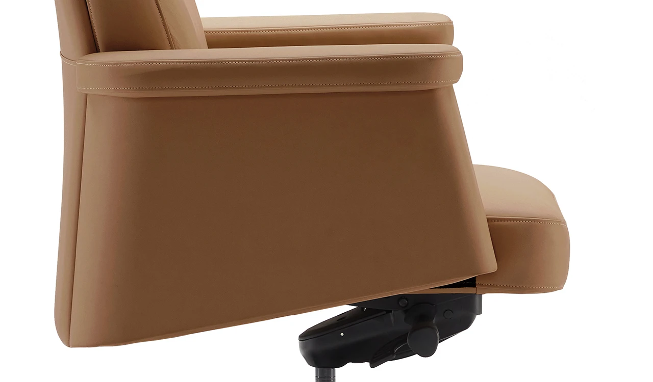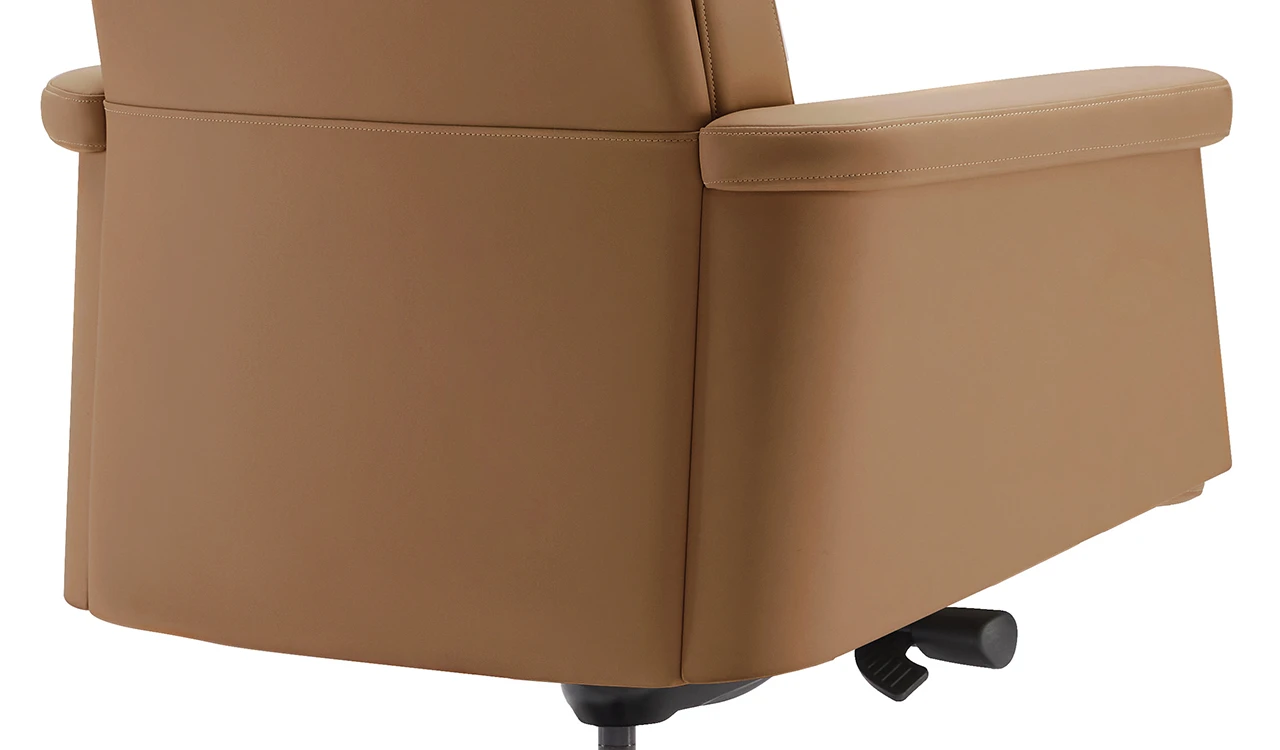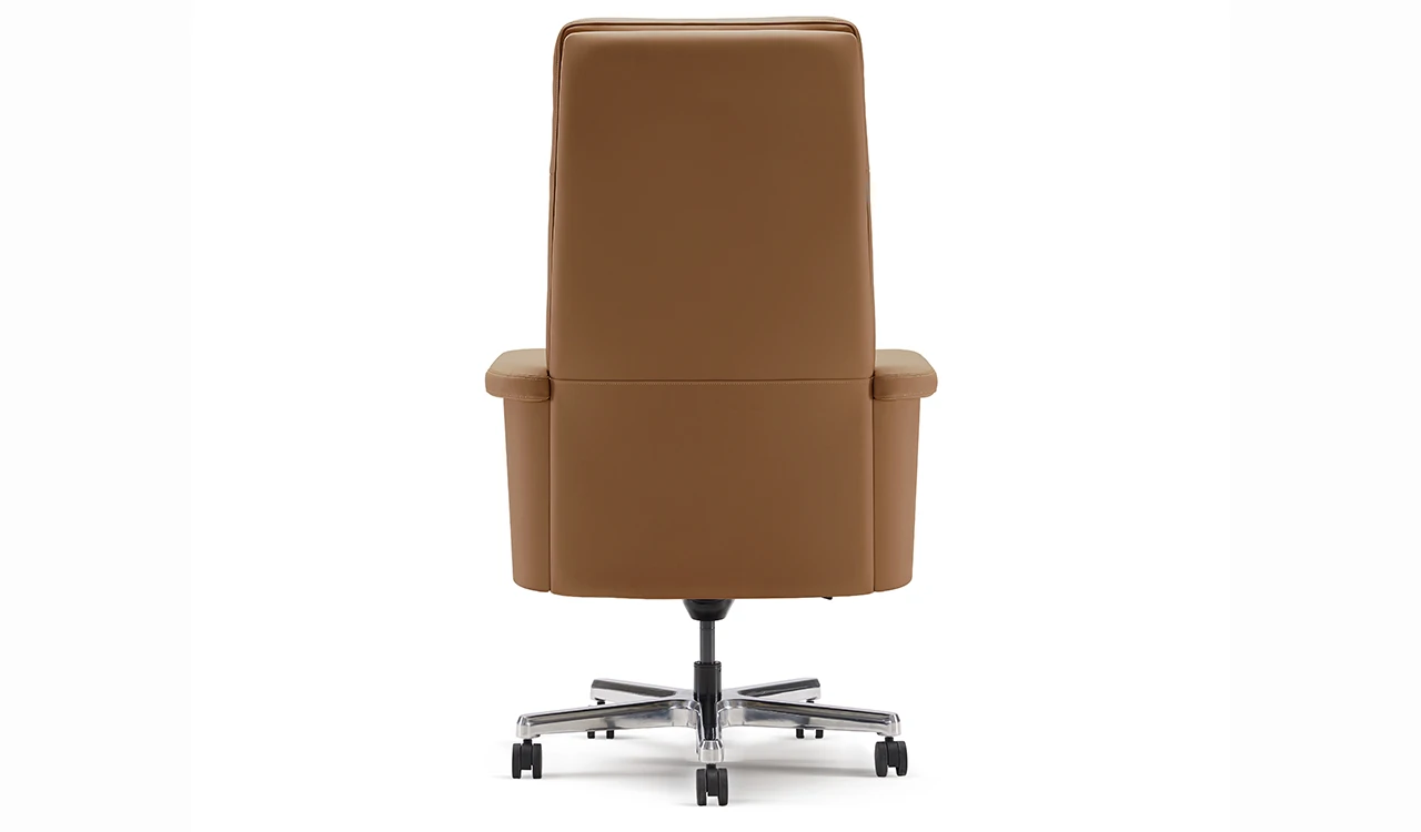 A plush high-back chair designed for ultimate comfort and elegance. The seat and back combine high-density cut cotton with luxurious down feather fillings for soft yet supportive seating. Upholstered in genuine leather with leather clad arms it exudes sophistication. A synchronized tilt mechanism with three lockable positions ensures ergonomic adaptability, while the aluminum alloy base with smooth PU casters provides stability and effortless mobility. Perfectly blending plush comfort with modern functionality, this Royale Series chair is your answer to ultimate luxury.