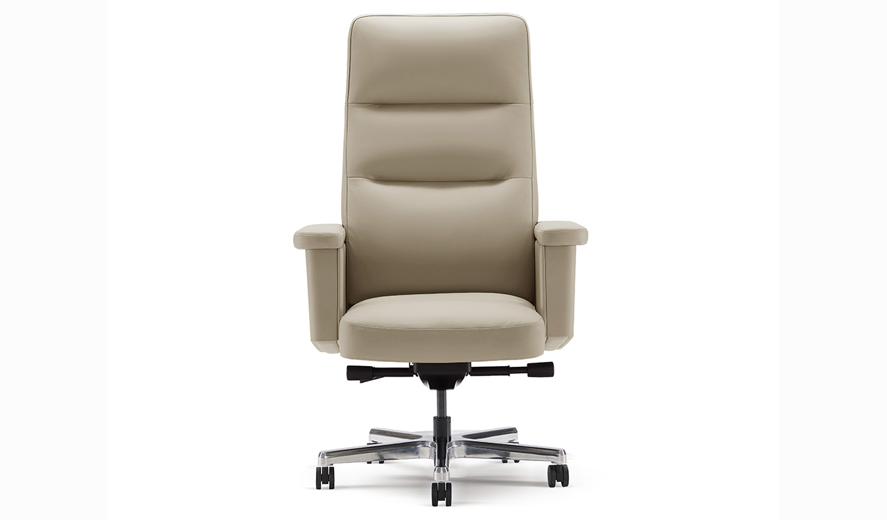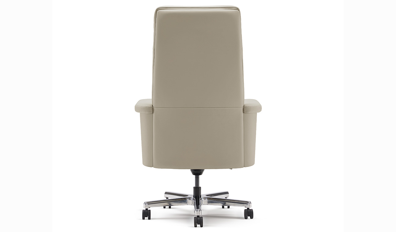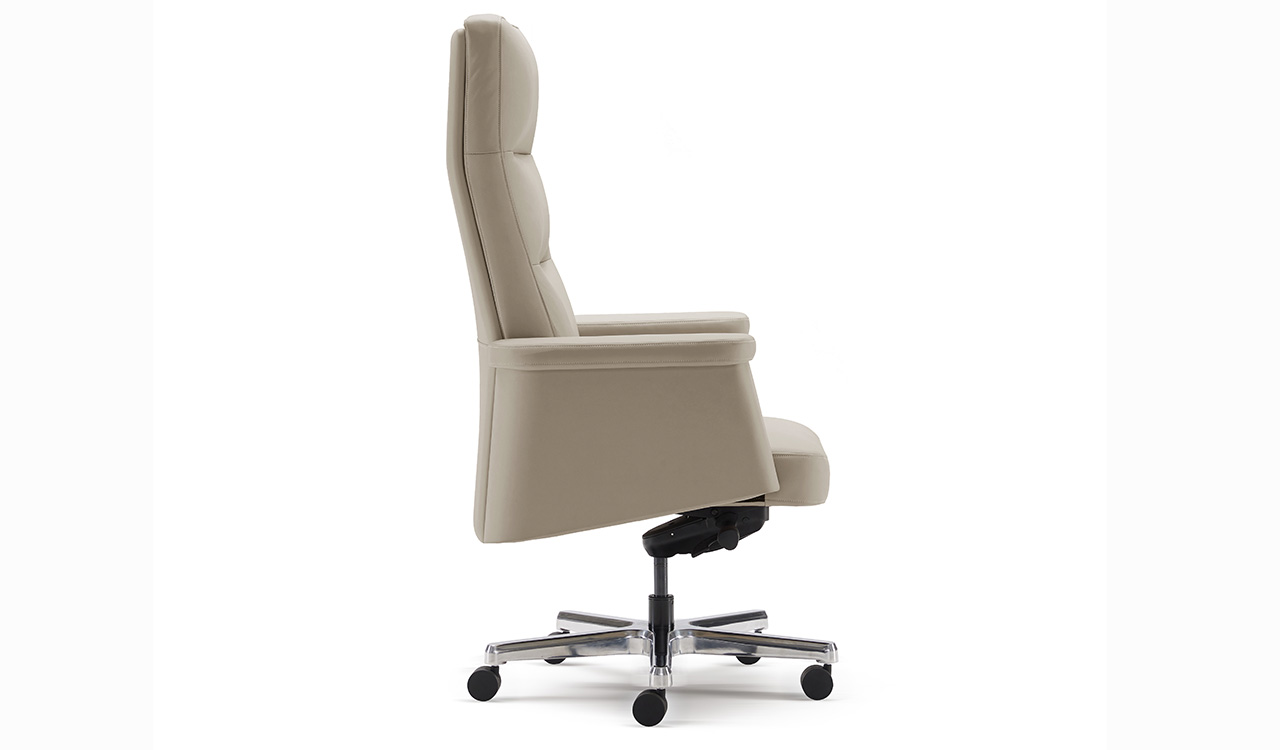 A plush high-back chair designed for ultimate comfort and elegance. The seat and back combine high-density cut cotton with luxurious down feather fillings for soft yet supportive seating. Upholstered in genuine leather with leather clad arms it exudes sophistication. A synchronized tilt mechanism with three lockable positions ensures ergonomic adaptability, while the aluminum alloy base with smooth PU casters provides stability and effortless mobility. Perfectly blending plush comfort with modern functionality, this Royale Series chair is your answer to ultimate luxury.