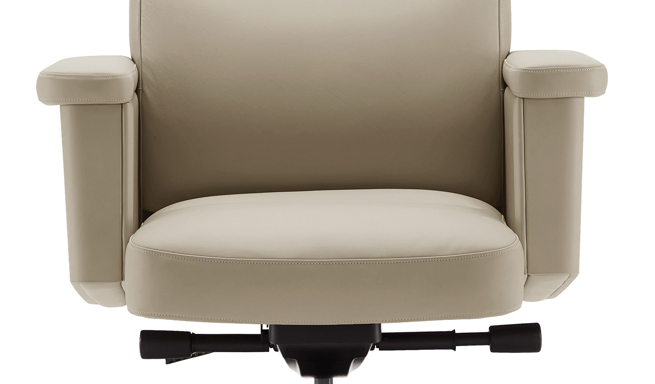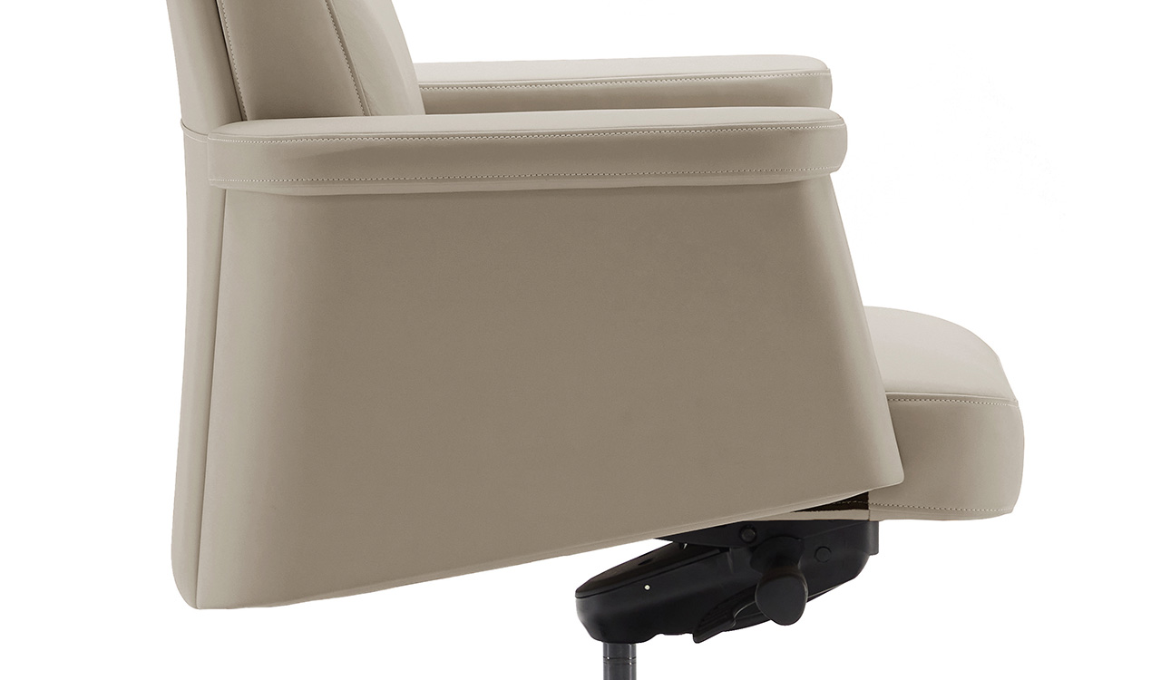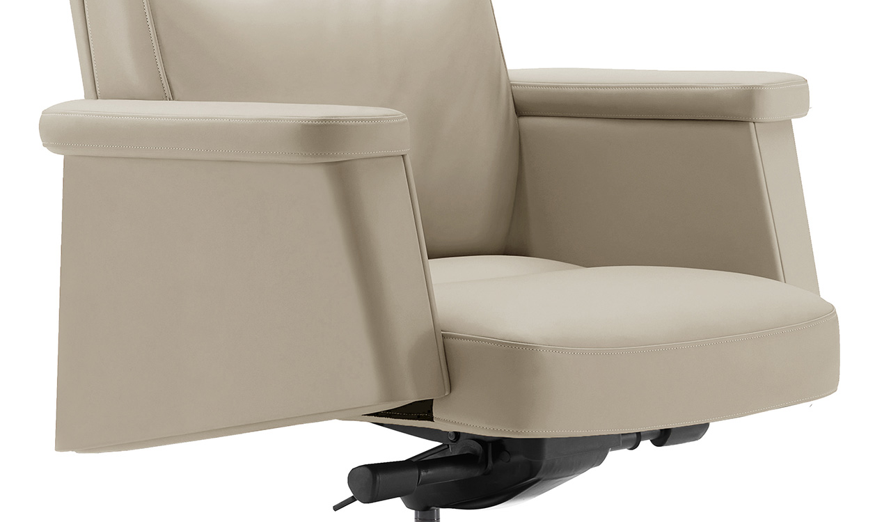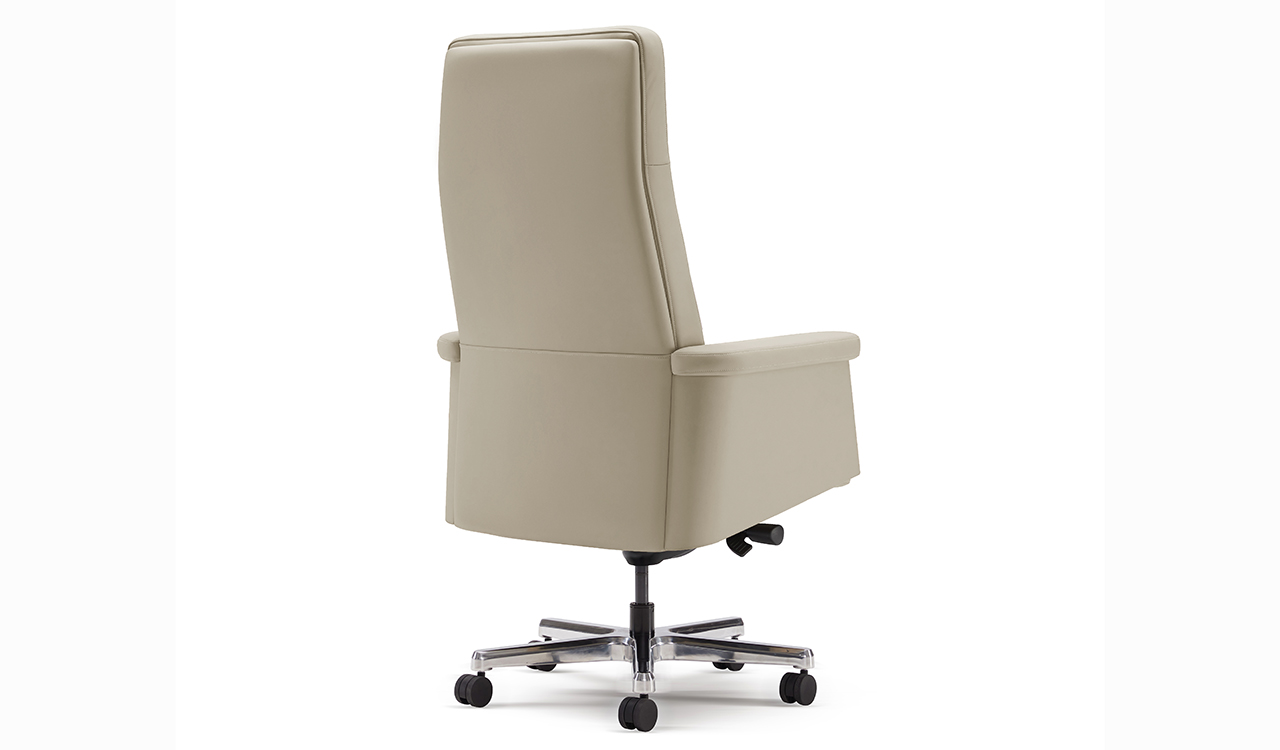 A plush high-back chair designed for ultimate comfort and elegance. The seat and back combine high-density cut cotton with luxurious down feather fillings for soft yet supportive seating. Upholstered in genuine leather with leather clad arms it exudes sophistication. A synchronized tilt mechanism with three lockable positions ensures ergonomic adaptability, while the aluminum alloy base with smooth PU casters provides stability and effortless mobility. Perfectly blending plush comfort with modern functionality, this Royale Series chair is your answer to ultimate luxury.