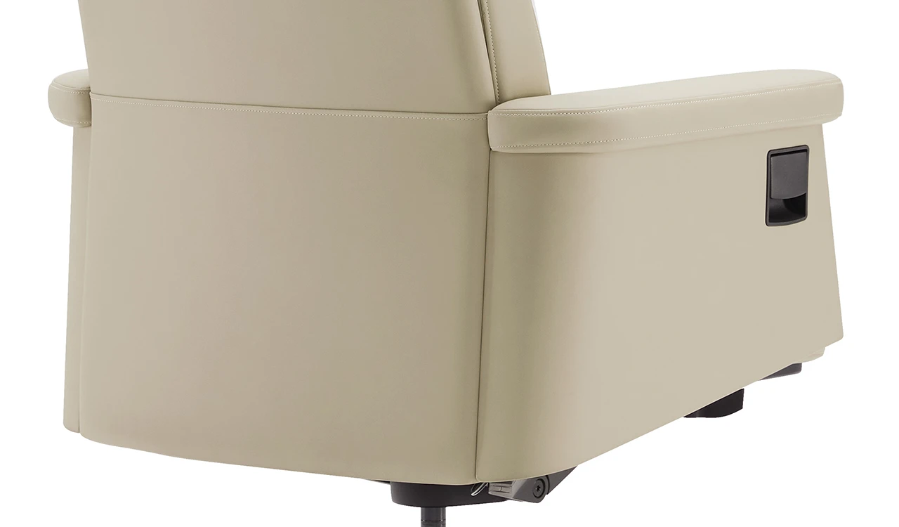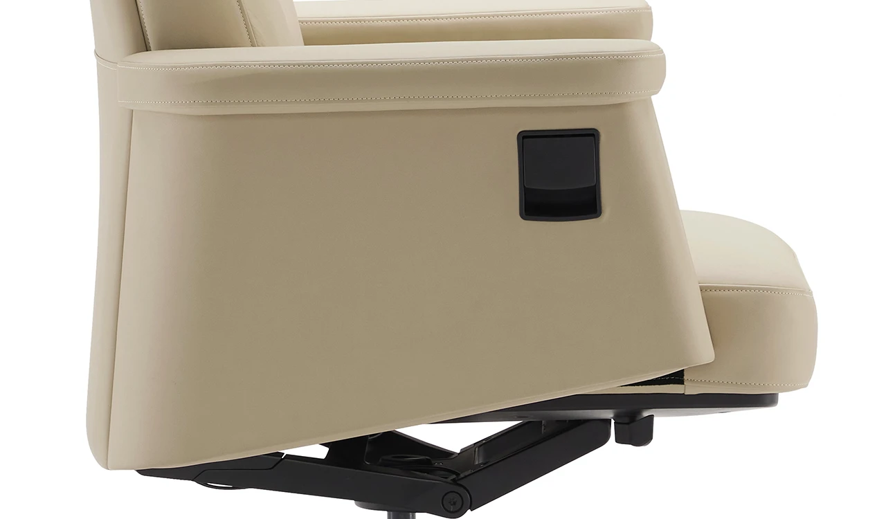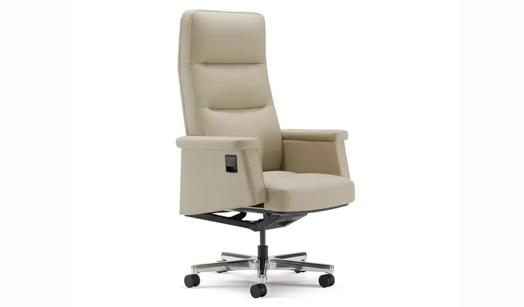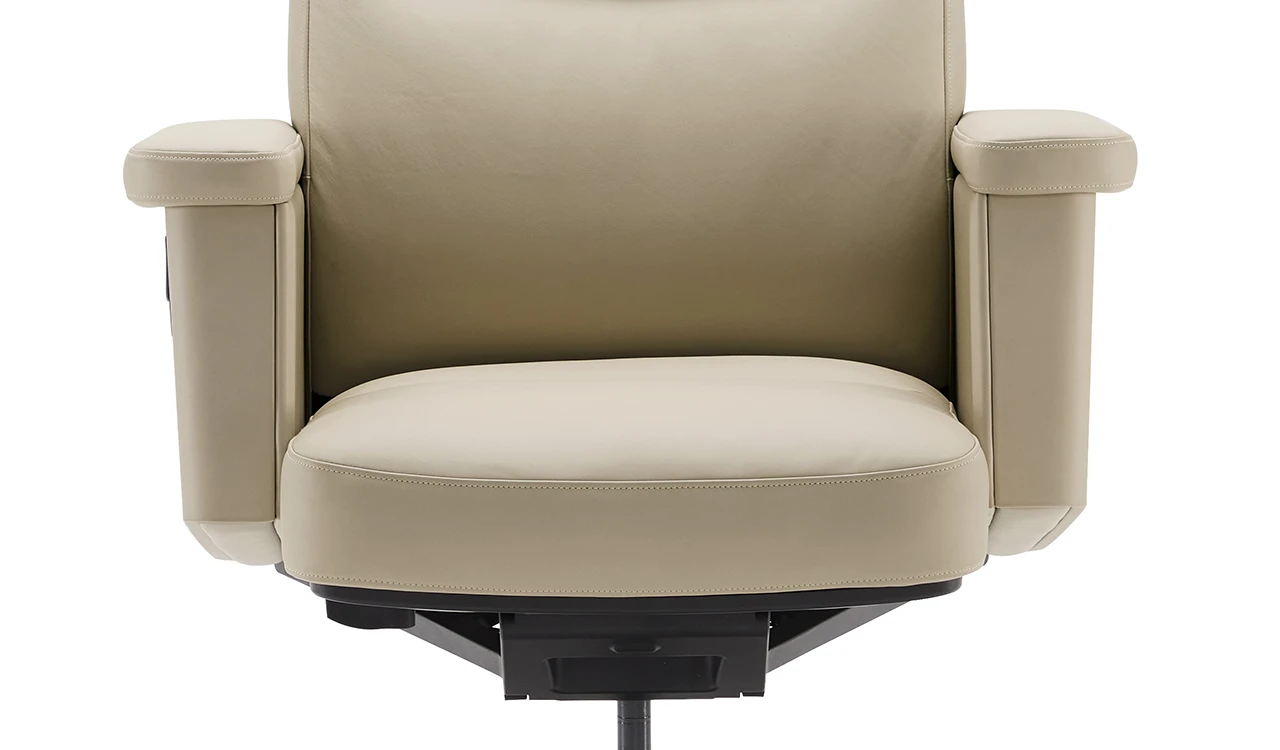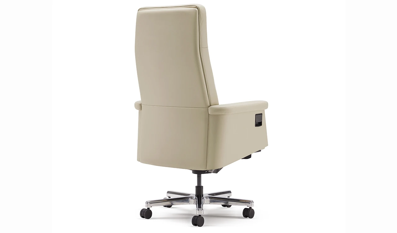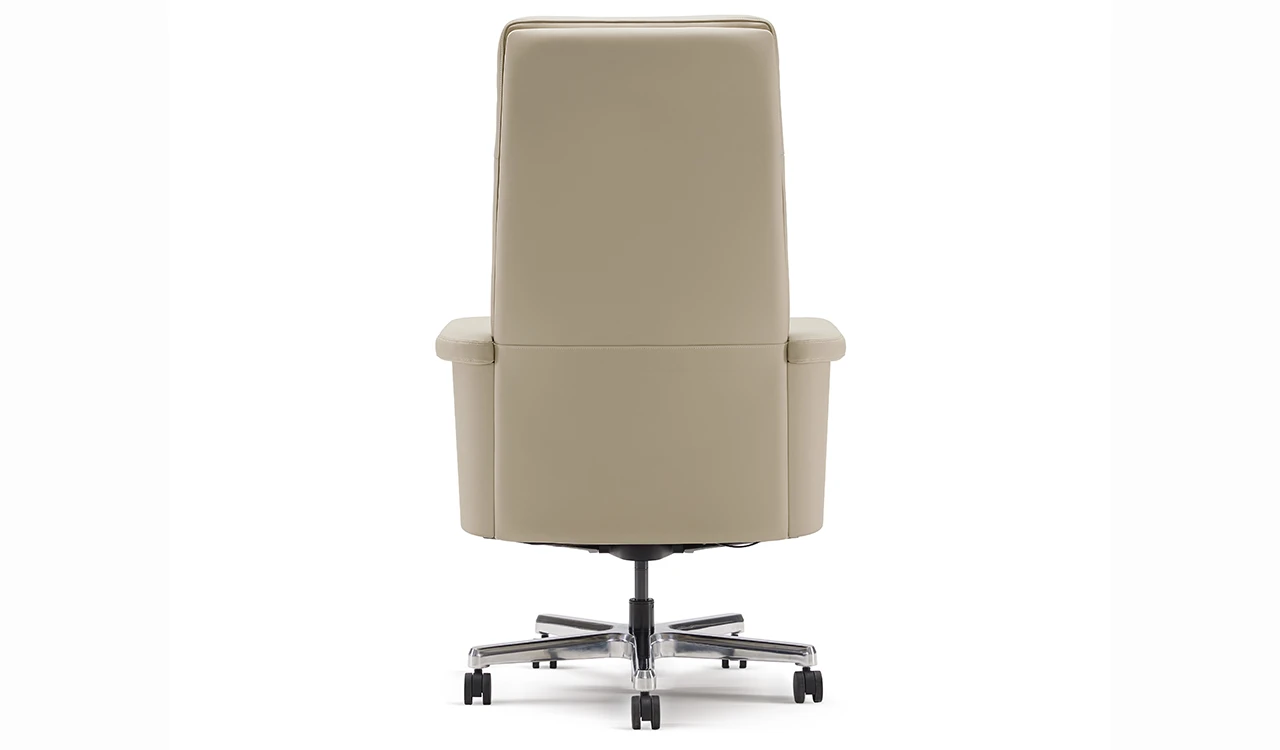 A plush high-back chair designed for ultimate comfort and elegance. The seat and back combine high-density cut cotton with luxurious down feather fillings for soft yet supportive seating. Upholstered in genuine leather with leather clad arms it exudes sophistication. A synchronized tilt mechanism with three lockable positions ensures ergonomic adaptability, while the aluminum alloy base with smooth PU casters provides stability and effortless mobility. Perfectly blending plush comfort with modern functionality, this Royale Series chair is your answer to ultimate luxury.