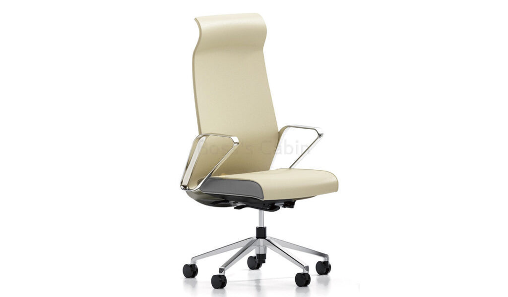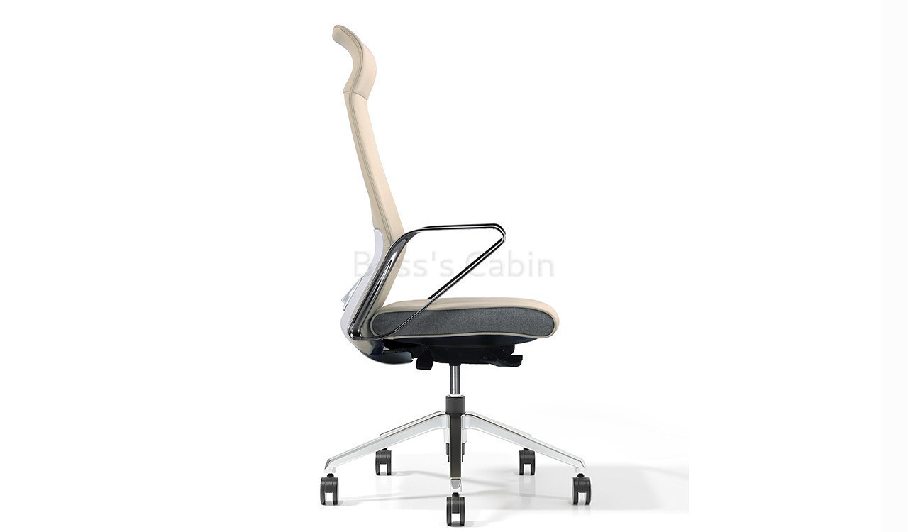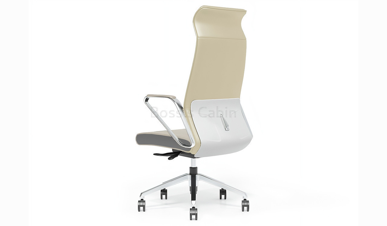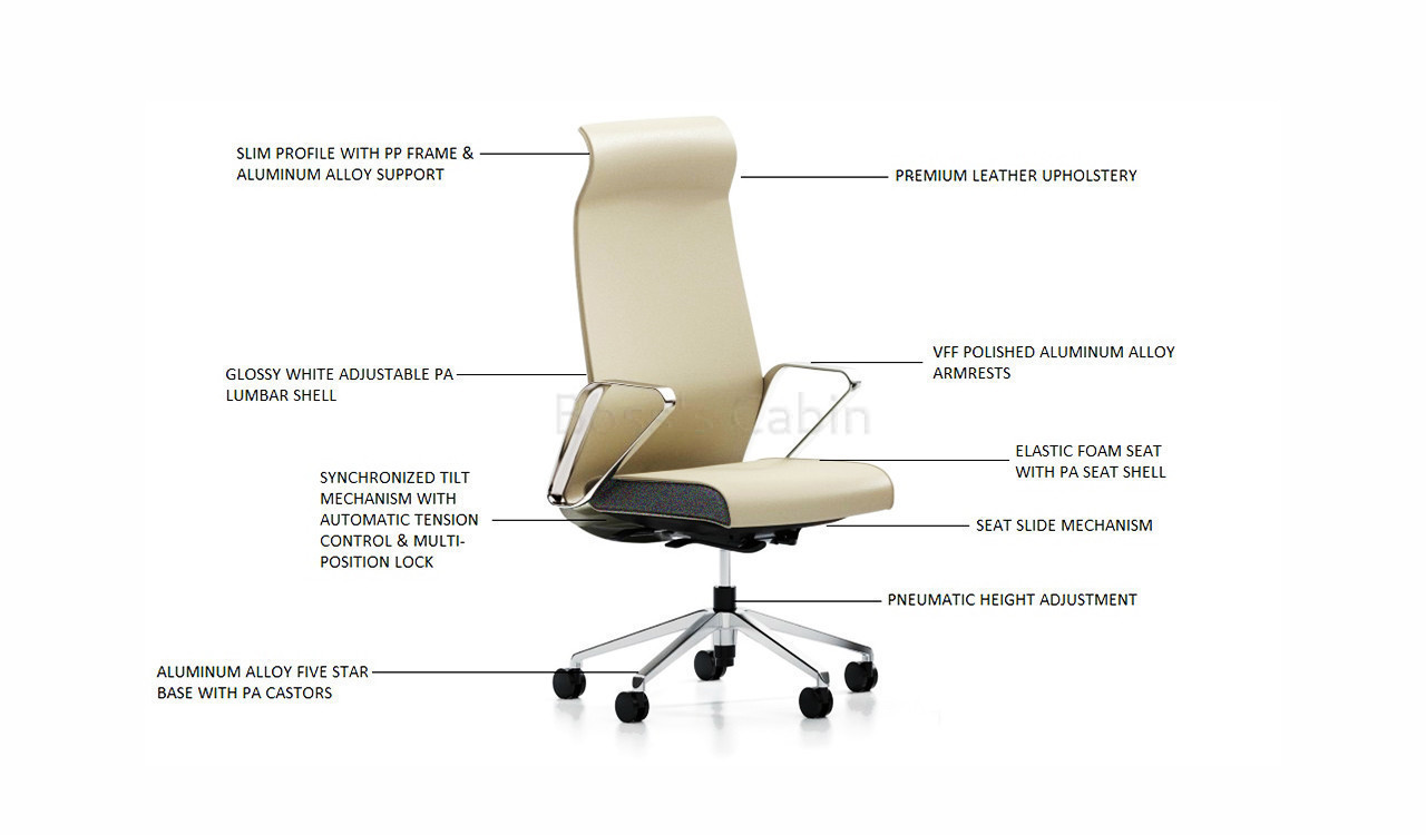 A sleek, modern high back chair upholstered in fine genuine leather with state-of-the-art ergonomics. Its slim profile is enhanced by a piano-black fiberglass back panel for optimum lumbar support and posture. The VVF polished aluminum alloy armrests add elegance, while the synchronized tilt mechanism with multi-position locking and smooth height adjustment provide flexibility. Supported by a polished aluminum base and durable nylon castors, this Hero Series chair blends luxury, performance, and durability for the contemporary workspace.