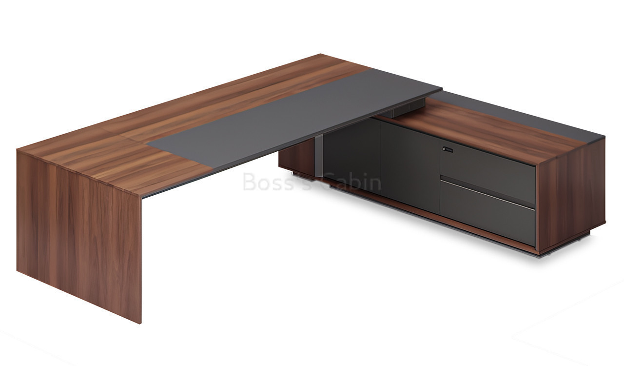 Part of the Maxima series this sleek, trendy and minimal 8.5 feet width office desk comes with side cabinet. It is best suited for large cabins of 200 sft and upward.