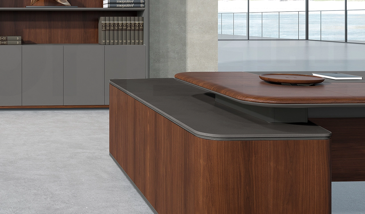 This luxuriously designed office desk from our Italian series Rodolfo is suitable for modern office cabins of 250 sft or more.