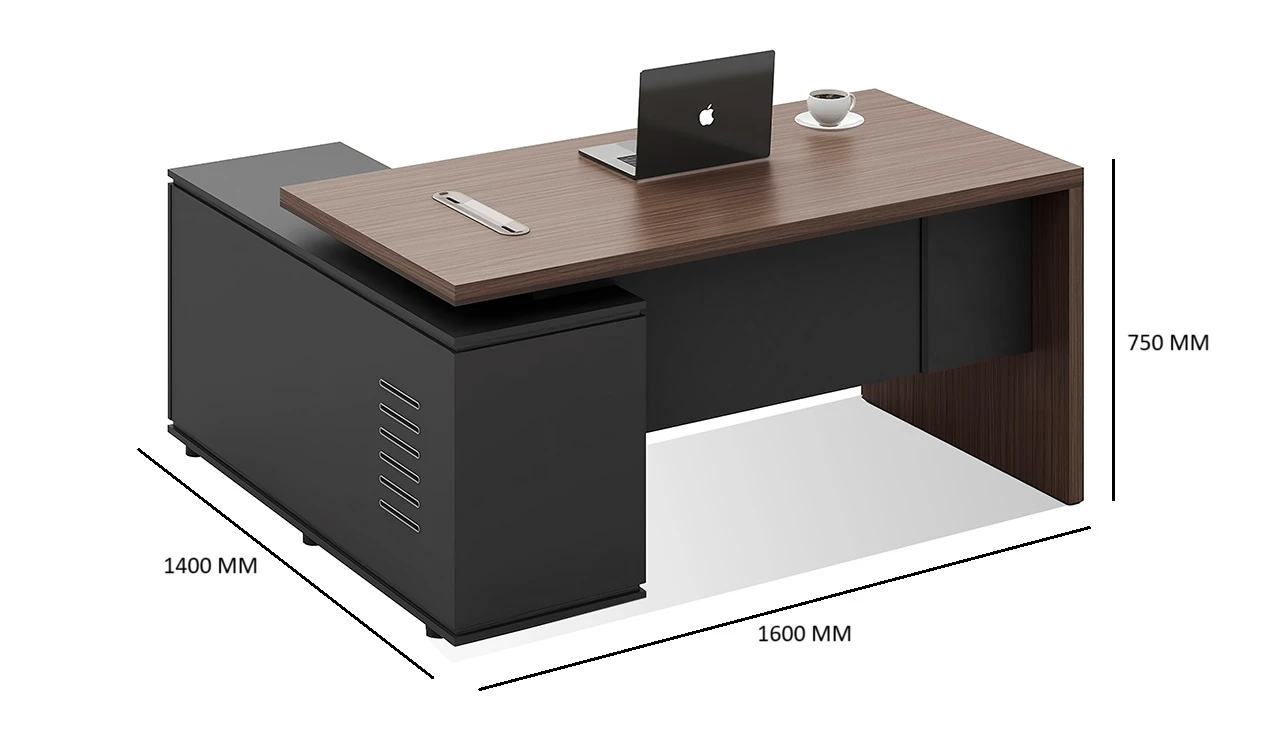 Part of the Vistra series this elegant 5 feet width office desk comes with side cabinet. It is best suited for large cabins of 100 sft and upward.